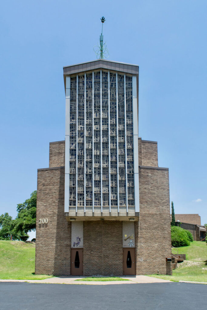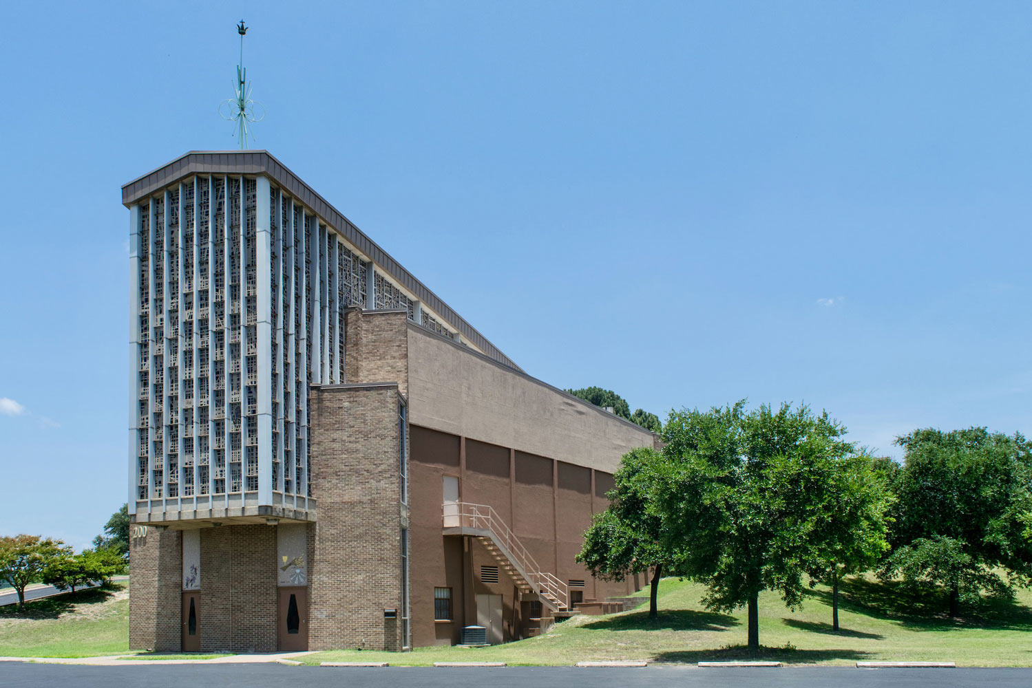 This building is the second home of the Gethsemane Lutheran Church, the oldest Swedish Lutheran congregation in Texas. The parishioners decided to move from their original location at Ninth and Guadalupe Streets in 1962, relocating farther north to retain proximity to young families migrating to the suburbs. In the same year, the Augustana Synod denomination merged with several other Lutheran groups to become incorporated into the Lutheran Church of America, which expanded the demographic of worshippers beyond those of a specific national heritage. The church’s New Formalist style reflects the demographical and cultural shifts taking place in the Lutheran church during the mid-century era.