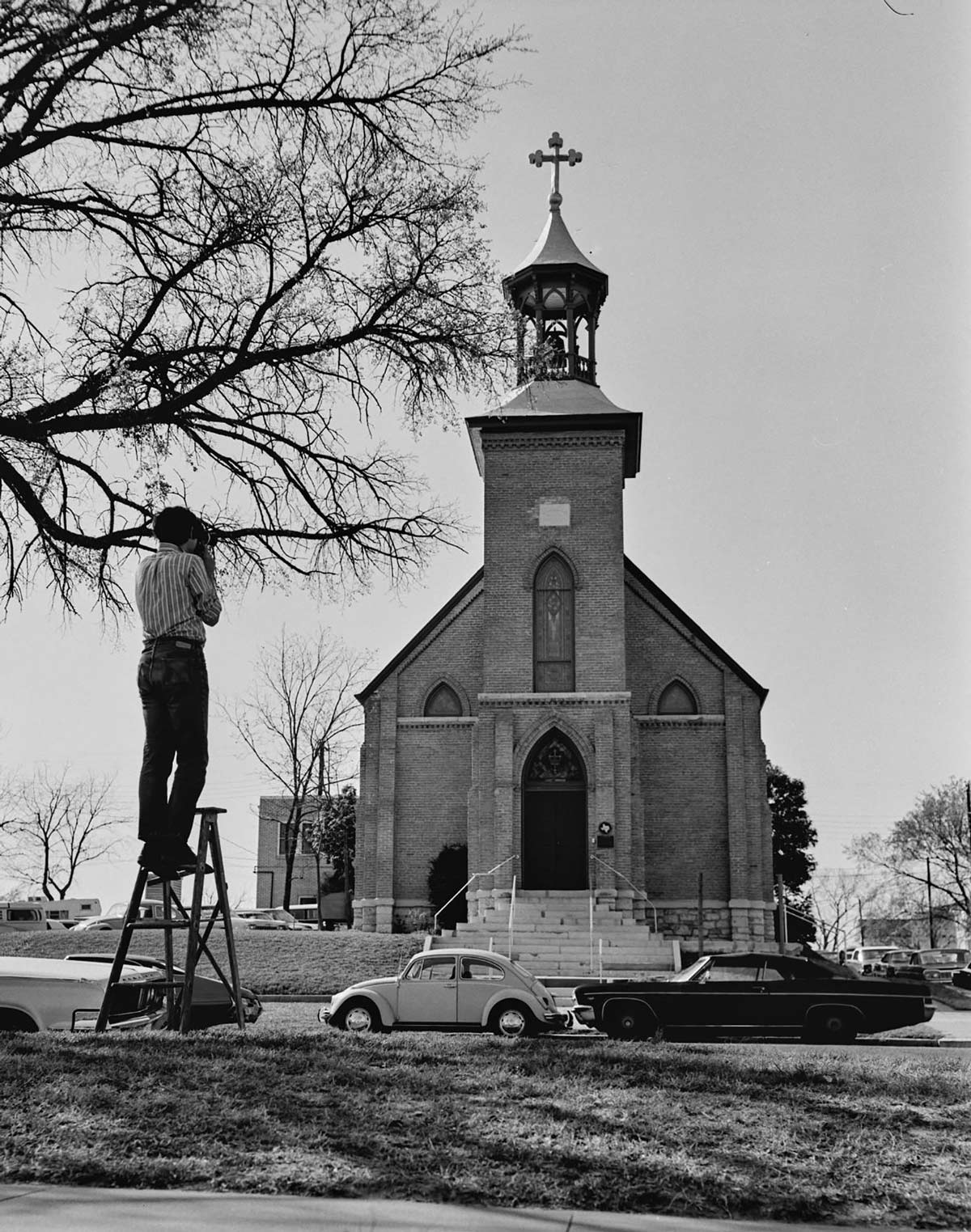 In 1882, church members felt compelled to create a new building, but funds were limited. They decided to reuse salvaged materials from the adjacent Texas State Capitol, which had recently burned down. Buff brick and limestone were collected from just a block away and used to build significant portions of the new church. The frugal implementation of reclaimed materials allowed the church to meet a tight budget and retain a grand presence at the same time. The concept of reuse was employed again when two massive Gothic-style doors–removed from the Old Main building at the University of Texas—were installed as the main entry doors. Years later, after the church outgrew the building, the congregation moved to a new location and the empty structure was slated for demolition. Local preservation advocates successfully lobbied for historic designation, extending the structure’s life and purpose.